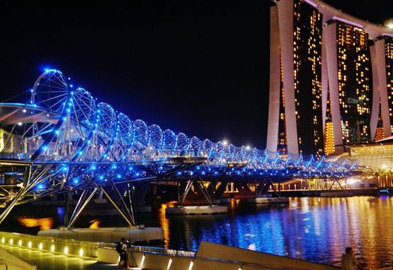 हेलिक्स ब्रिज, सिंगापुर- सिंगापुर में स्थित हेलिक्स ब्रिज का डिजाइन DNA से प्रेरित है. ये पुल नदी के ऊपर बनाया गया है. रात के समय रंग-बिरंगी रोशनी से चमचमाते हुए इस पुल की खूबसूरती देखते ही बनती है. बता दें, ये पुल केवल पैदल चलने वाले यात्रियों के ही लिए है.