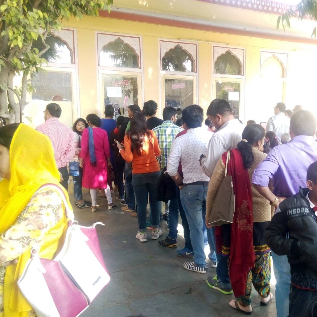 जयपुर के टूरिज्म पर नोटबंदी का कोई असर नहीं दिख रहा है. यहां टूरिस्टों की संख्या इतनी बढ़ी है कि हर तरफ जाम लगा हुआ है और होटलों में कमरे नहीं मिल रहे हैं. टूरिस्ट प्लेस की टिकट खिड़कियों पर ऐसी भीड़ लगी है, मानो किसी एटीएम पर लोग पैसे निकालने के लिए खड़े हों.