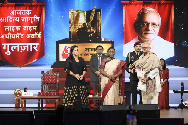 22 नवंबर से 24 नवंबर तक यानी पूरे तीन दिनों के लिए दिल्ली के मेजर ध्यानचऺद नेशनल स्टेडियम में साहित्य का मेला लगा हुआ है. इस दौरान साहित्य आजतक 2024(Sahitya Aajtak 2024) के दूसरे दिन साहित्यकारों को महामहिम राष्ट्रपति द्रौपदी मुर्मू ने 'साहित्य आजतक' के मंच पर आकर 'आजतक साहित्य जागृति सम्मान' प्रदान किया. गीतकार गुलजार को 'आजतक साहित्य जागृति लाइफ टाइम अचीवमेंट' सम्मान से नवाजा गया.