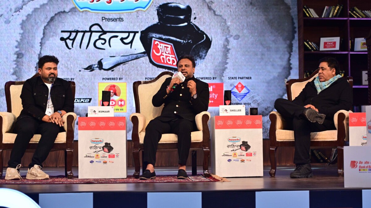 शब्द और सुरों के महाकुंभ 'साहित्य आजतक' के दूसरे दिन गीतकार राजशेखर, शैली और कुमार ने शिरकत की. इस दौरान लिरिसिस्ट कुमार ने अपने गाने 'बेशरम रंग' के बारे में बात करते हुए कहा कि किसी राइटर के सामने पहला टारगेट ये होता है कि गाना कैसे पूरा करना है. खासकर सिद्धार्थ आनंद की फिल्म में क्वालिटी लिखनी है, उन्होंने कहा कि मैंने बेशरम रंग बहुत सोचकर नहीं लिखा, हम इस गाने पर एक महीने से काम कर रहे थे. इसमें एक लाइन है 'नशा चढ़ा जो शरीफी का... उतार फेंका है' यहीं पर गाड़ी अटक गई थी. फिर दो दिन बाद सिद्धार्थ आनंद और विशाल-शेखर बैठे हुए थे, तभी मैंने यूं ही कहा कि बेशरम रंग कहां देखा है दुनिया वालों ने... इसके तुरंत बाद सिद्धार्थ ने कहा कि गाना लॉक हुआ. इस गाने पर हुई कॉन्ट्रोवर्सी पर उन्होंने कहा कि मेरा काम है काम करना, लोगों का काम है बदनाम करना.