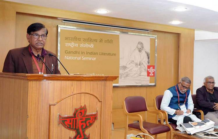 'भारतीय साहित्य में गांधी' विषय पर आयोजित राष्ट्रीय संगोष्ठी का उद्घाटन लब्धप्रतिष्ठ अंग्रेज़ी कवि एवं लेखक जयंत महापात्र ने किया. विशिष्ट अतिथि थे मॉरीशस सरकार के पूर्व शिक्षा मंत्री तथा यूनेस्को के पूर्व निदेशक अरमूगम परसुरामन. संगोष्ठी का बीज भाषण प्रख्यात इतिहासकार एवं लेखक सुधीर चंद्रा ने दिया, तो अध्यक्षीय वक्तव्य साहित्य अकादेमी के अध्यक्ष चंद्रशेखर कंबार तथा समाहार वक्तव्य साहित्य अकादेमी के उपाध्यक्ष माधव कौशिक ने दिया.