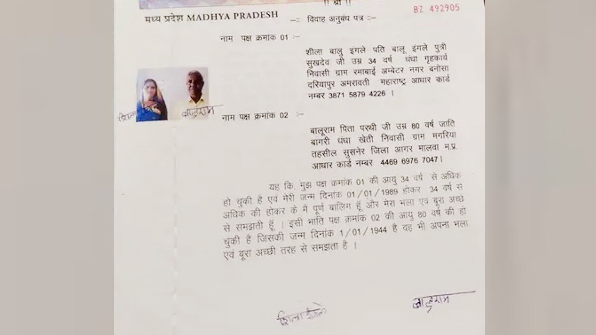 पता चला कि सुसनेर के नजदीकी मगरिया गांव निवासी बालूराम बागरी (80) ने महाराष्ट्र के अमरावती की रहने वाली शीला इंगले (34) से शादी रचाई है. दोनों की सोशल मीडिया से दोस्ती हुई थी और फिर यह दोस्ती प्यार में बदलते हुए शादी तक जा पहुंची. इसके बाद न्यायालय में जाकर एक वकील के माध्यम से दोनों ने कोर्ट मैरिज के लिए अपने अपने दस्तावेज जमा किए.