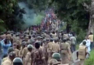 महिला पुलिसकर्मियों ने प्रदर्शन कर रही महिलाओं को खदेड़ा