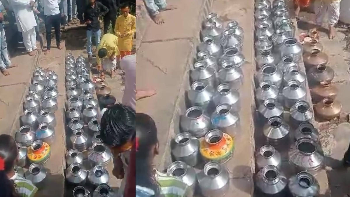 दरअसल, भोलेनाथ के मंदिर के पास से ही एक नदी बहती है. उस नदी के पास से मंदिर तक कतारबद्ध होकर ग्रामीणों ने जल को गागरों में भरा और एक दूसरे को पास करते हुए मंदिर के गर्भग्रह को जलमग्न कर दिया. शिवलिंग को पानी में डुबो दिया. साथ ही साथ भगवान से बारिश होने की मंगल कामना भी की.