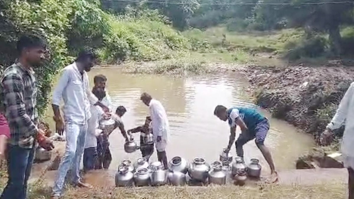 इससे पहले, लोगों ने नदी किनारे पर पूरे गांव से एकत्रित करके लाई गईं गागरों को शुद्ध किया. इसके बाद दर्जनों ग्रामीण कतारबद्ध हुए और सारे गागरों को समीपस्थ बह रही नदी से भर-भरकर शिव भगवान को जलमग्न कर दिया गया.