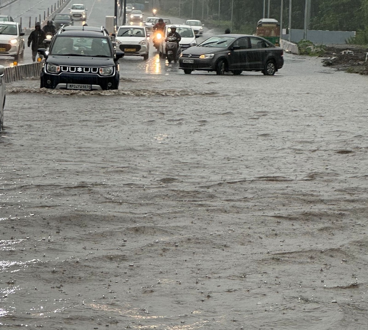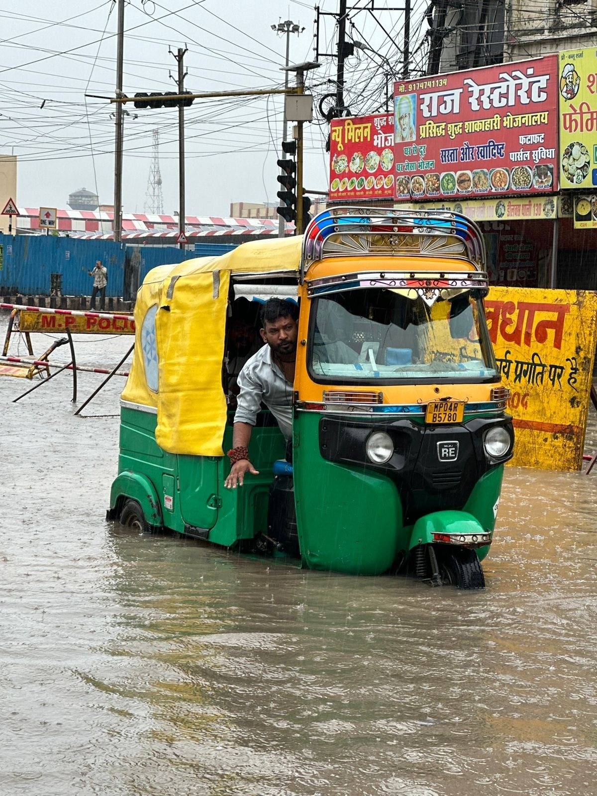 सड़कों पर दो से ढाई फीट पानी भरने से गाड़ियां पानी से होकर गुजर रही हैं, जबकि कई गाड़ियां और ई-रिक्शा पानी में बंद हो रहे हैं.