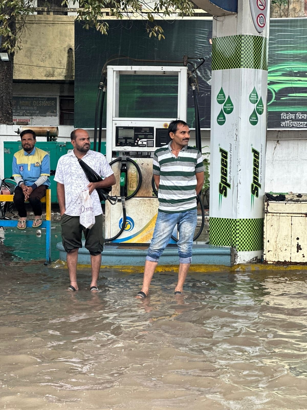 ई-रिक्शा के खराब होने के कारण सवारियों को सड़क पर उतरना पड़ रहा है. इलाके की दुकानें और पेट्रोल पंप भी पानी में डूब गए हैं, जिससे स्थानीय लोगों और दुकानदारों को भारी परेशानी का सामना करना पड़ रहा है.