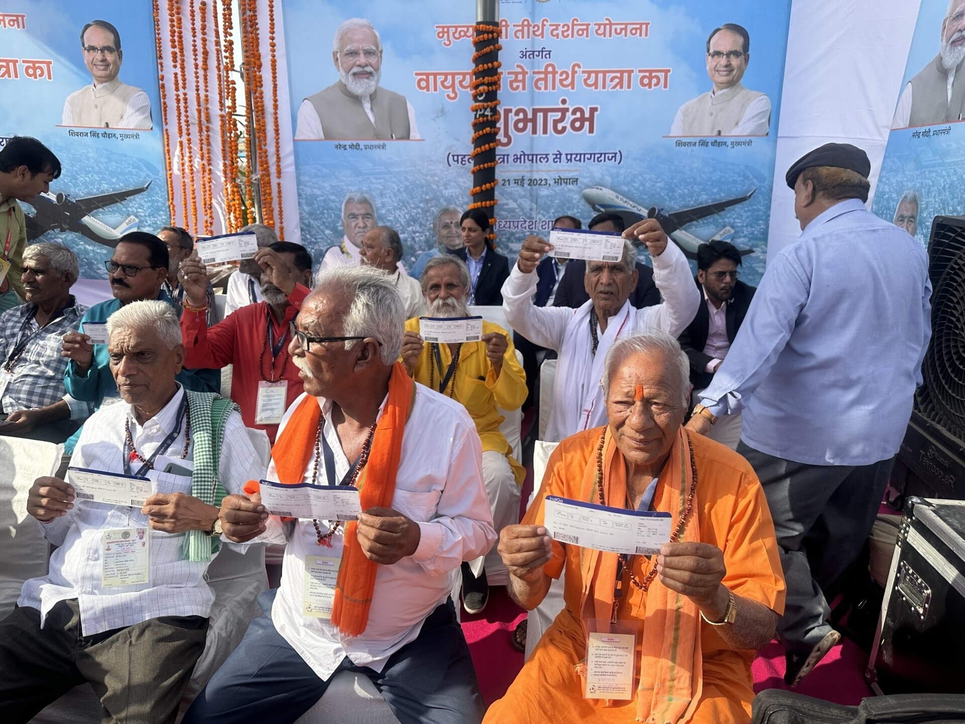 मध्य प्रदेश देश का पहला राज्य बन गया है जहां मुख्यमंत्री तीर्थ-दर्शन योजना में बुजुर्गों को हवाई जहाज से तीर्थ-यात्रा कराई जा रही है. रविवार को 32 तीर्थ यात्रियों को लेकर इंडिगो की फ्लाइट भोपाल से प्रयागराज के लिए रवाना हुई. इसमें 24 पुरुष और 8 महिला तीर्थयात्री शामिल हैं.