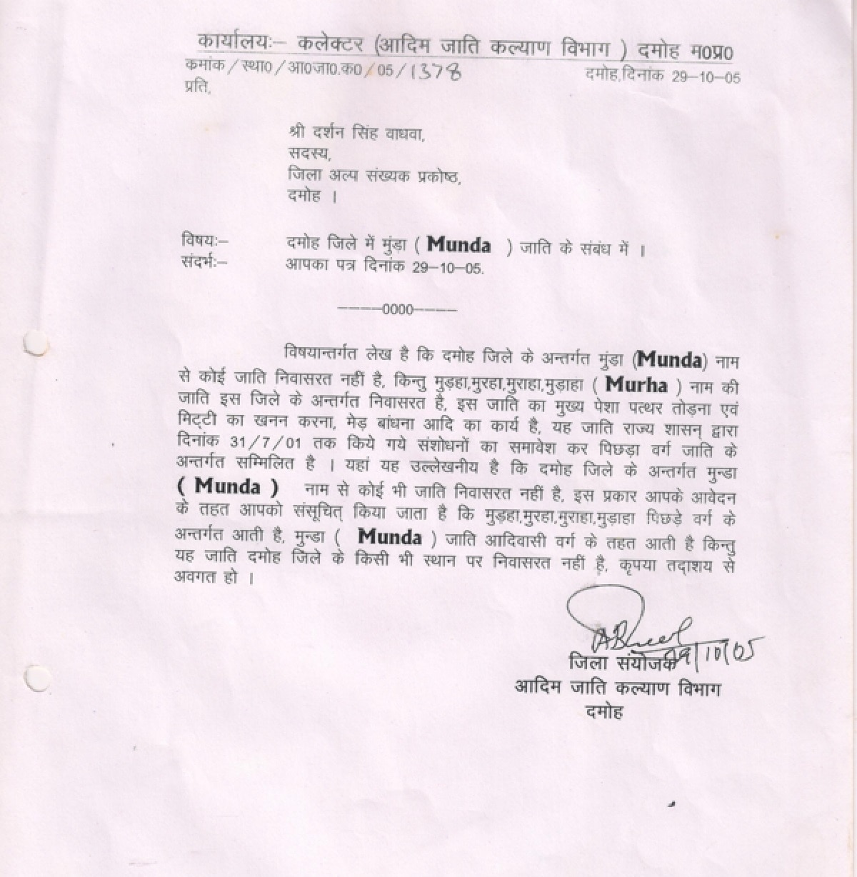 मामला 'मुड़ा' जाति से जुड़ा है, जहां लोग 'मुड़ा' पर बिंदु लगाकर 'मुंडा' बनकर आदिवासी बिरसा मुंडा के वंशजों की जाति में शामिल हो गए. उदाहरण के लिए, जय श्री मुड़ा, 'मुंडा' बनकर जबलपुर के पाटन की मुख्य नगर पालिका अधिकारी बनी हुई हैं. उनका भाई विक्रम मुड़ा, 'मुंडा' बनकर जबलपुर की व्हीकल फैक्ट्री में नौकरी कर रहा है.