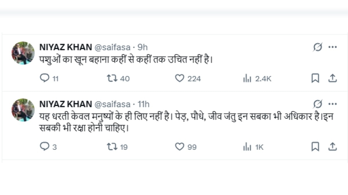 फिलहाल नियाज खान के इस ट्वीट ने बकरीद से पहले सोशल मीडिया पर बहस छेड़ दी है, जहां कुछ लोग उनके पर्यावरण संरक्षण के विचारों का समर्थन कर रहे हैं, तो कुछ इसे धार्मिक भावनाओं से जोड़कर देख रहे हैं.