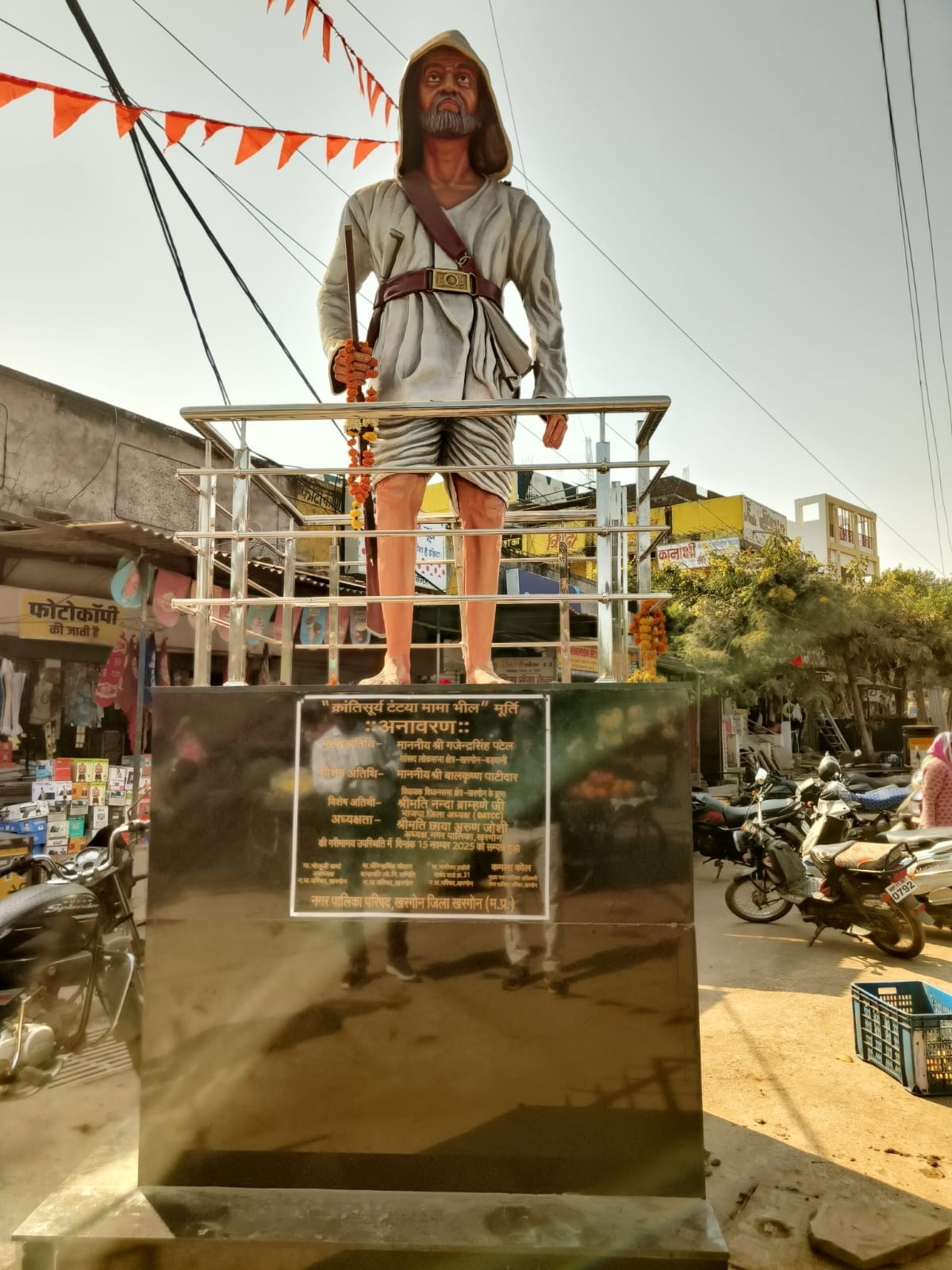 MP News: खरगोन शहर के बिस्टान नाका तिराहा पर स्थापित जननायक टंट्या मामा भील की आदमकद प्रतिमा को लेकर हुआ विवाद अब भ्रष्टाचार के बड़े खुलासे में बदल गया है. कागजों पर 'धातु या पत्थर' की मूर्ति का आदेश देकर मौके पर 'फाइबर' की मूर्ति लगा दी गई, जिसका लोकार्पण भी वीआईपी अतिथियों से करा लिया गया. मामले ने तूल पकड़ा तो प्रशासनिक हलकों में हड़कंप मच गया. मामले की पुष्टि होते ही जिला कलेक्टर भव्या मित्तल ने कड़ा रुख अपनाते हुए मूर्ति को तत्काल बदलने और दोषी अधिकारियों और ठेकेदार के खिलाफ कार्रवाई के निर्देश दिए हैं. परिषद में निर्णय लिया है कि दोबारा धातु की मूर्ति लगाएंगे.