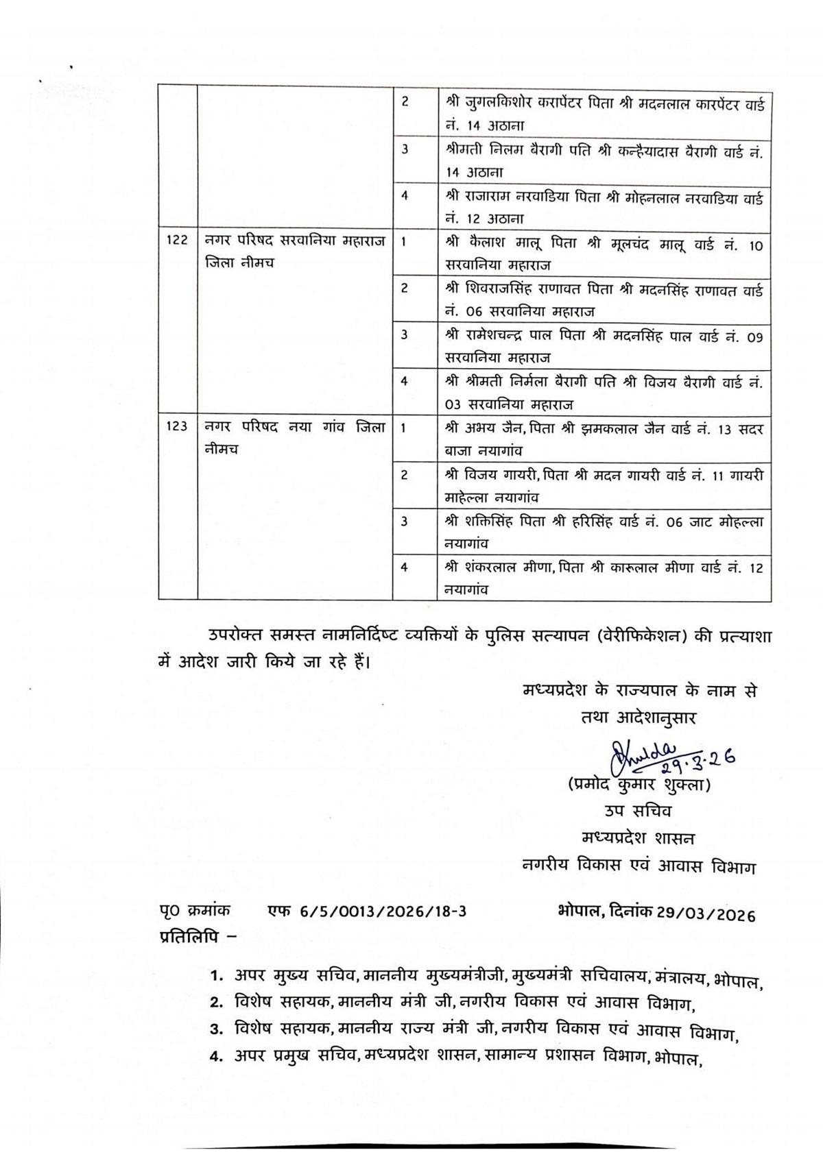 MP: लंबे इंतजार के बाद एल्डरमैन की पहली सूची जारी, 25 जिलों की 123 नगर परिषदों में मनोनीत पार्षद नियुक्त, देखें नाम
