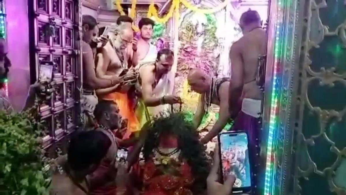 बिल्ब पत्र और तुलसी की माला पहनाई गईं