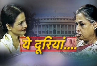 बॉलीवुड अभिनेत्री रेखा जब संसद में शपथ लेने पहुंची तो कैमरा पूरे समय उन्ही को फॉलो कर रहा था लेकिन जैसे ही रेखा ने शपथ लेना शुरू किया..संसद दीर्घा में बैठे सांसदों में से कैमरा ने जया बच्चन को ही चुना. दूरदर्शन पर दिखी ये तस्वीरें..कुछ सांसदों को खटक गयी. खबर तो यही है कि जया बच्चन इस बारे में चुप हैं और चार सांसदों ने शिकायत दर्ज कराई है. ये सांसद हैं प्रकाश जावड़ेकर, एन के सिंह, नरेश अग्रवाल और माया सिंह.
