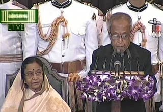 प्रणब मुखर्जी देश के 13वें राष्ट्रपति बन गए. बुधवार को उन्होंने संसद के सेंट्रल हॉल में राष्ट्रपति पद की शपथ ली. शपथ लेने के बाद नए राष्ट्रपति ने कहा कि भूख, भ्रष्टाचार और आतंकवाद बड़े खतरे हैं.