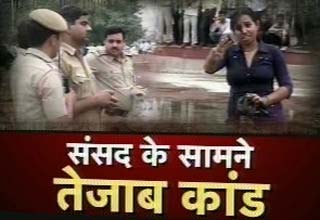 देश की राजधानी को आज एक महिला ने हिला कर रख दिया. तेज़ाब की बोतल हाथ में लेकर महिला ने संसद के पास सरे आम खुदकुशी की कोशिश की. इन तस्वीरों को आप भी देखेंगे तो हिल जाएंगे. हम आपको ये भी बता दें कि ये तस्वीरें जितनी चौंकाने वाली हैं, उससे कहीं ज़्यादा चौंकाने वाली इसके पीछे की कहानी. दिल्ली में सड़क पर बीचो बीच एक महिला तेज़ाब पीकर जान देने की धमकी देती है. और पुलिस लाचार बनी उसे देखती है, और जब पुलिस आगे बढ़कर उसे रोकने की कोशिश करती है तो करीब आधी बोतल गटक जाती है. क्या है ये पूरा माजरा आइए देखते हैं.