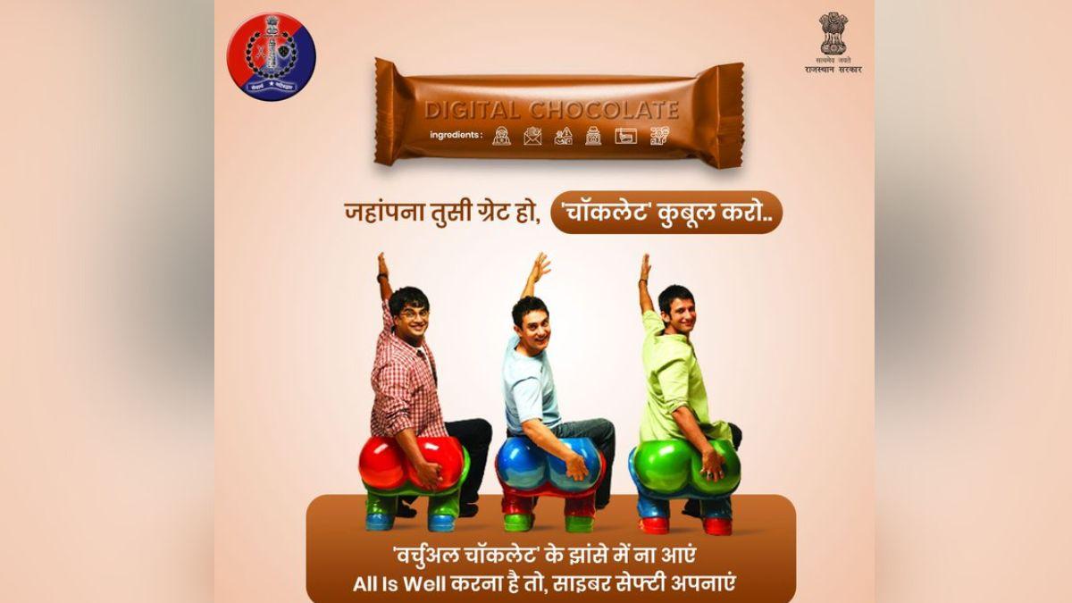 पुलिस की ओर से 'चॉकलेट डे' यानी 9 फरवरी को शेयर किया गया ट्वीट ब्लॉकबस्टर फिल्म '3 इडियट्स' का आइकॉनिक पोस्टर था. दरअसल, फिल्म के एक प्रसिद्ध डायलॉग "जहांपनाह तुस्सी ग्रेट हो, चॉकलेट कुबूल करो" का कैप्शन दिया गया है, इसने लोगों को "डिजिटल चॉकलेट" से दूर रहने और "ऑल इज वेल" सुनिश्चित करने के साथ ही साइबर सुरक्षा अपनाने के लिए सतर्क किया है.