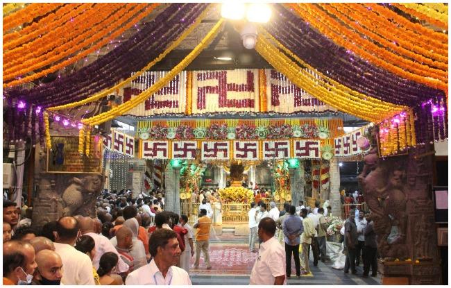उगादी के पर्व का स्वागत करने के लिए श्री वेंकटेश्वर मंदिर को रंग-बिरंगी लाइटों आदि से सजाया गया. मंदिर की सजावट का सारा काम पहले ही कर लिया गया था. त्योहार के मौके पर श्री वेंकटेश्वर मंदिर के मुख्य द्वार को नारियल और केले के पंडाल के साथ सजाया गया है. इसके साथ ही मुख्य द्वार को सजाने के लिए गन्ने, कच्चे आम और अलग-अलग तरह के फूलों का इस्तेमाल भी किया गया है. मंदिर के बाहर श्री भु वराह स्वामी और हनुमान स्वामी की तस्वीरें भी लगाई गई हैं जो तीर्थयात्रियों के लिए आकर्षण का केंद्र बनी हई हैं. इस दौरान मंदिर के दर्शन करने के लिए भक्त भारी संख्या में यहां पहुंचें. मंदिर की खूबसूरती ने सभी का दिल जीत लिया.