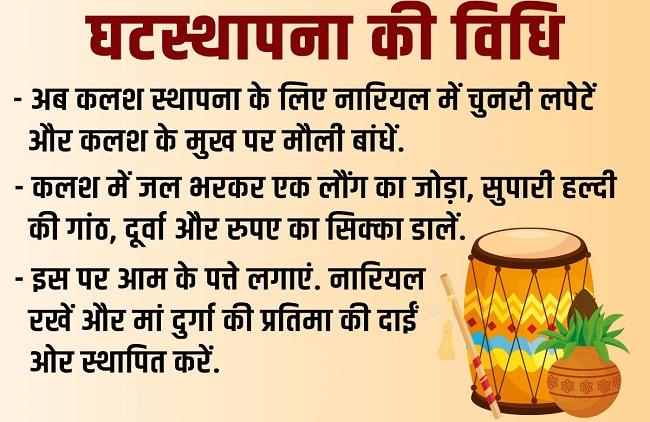 घटस्थापना का शुभ मुहूर्त 22 मार्च यानी आज सुबह 06 बजकर 23 मिनट से लेकर सुबह 07 बजकर 32 मिनट तक रहेगा. यानी घटस्थापना के लिए आपको कुल 01 घंटा 09 मिनट की अवधि मिलेगी. कलश स्थापित करने के लिए यह अबूझ मुहूर्त ही उत्तम रहेगा.