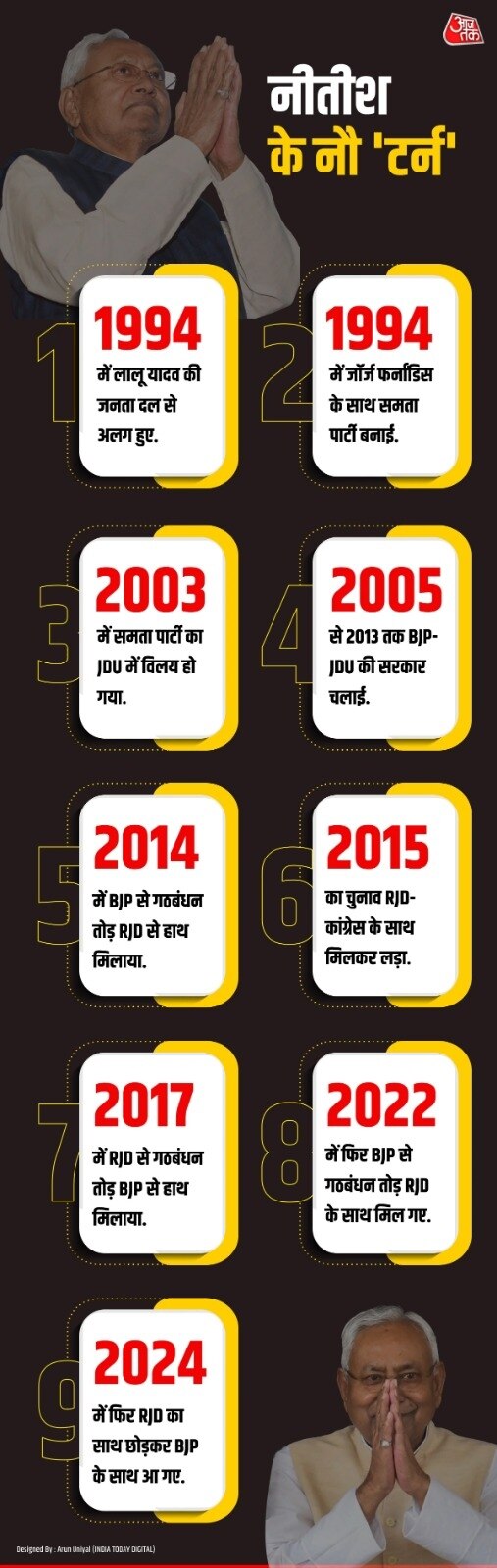 जानें नीतीश कुमार ने कब-कब बदला पाला