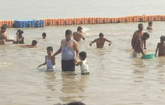 12:04 PM- संगम में श्रद्धालु गंगा यमुना और सरस्वती के संगम में डुबकी लगाते दिखाई दे रहे हैं जो सूर्य ग्रहण के अंतर को कम करने के लिए बड़े तौर पर दिखाई देता है.