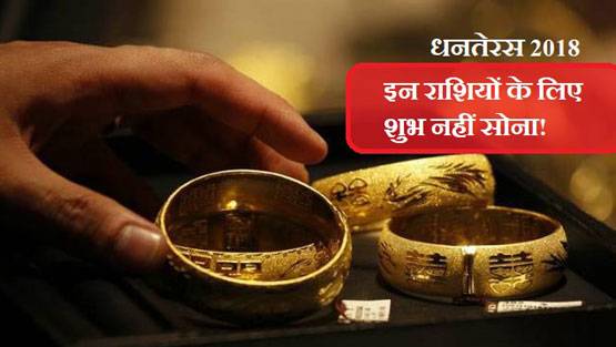 धनतेरस 2018 (Dhanteras 2018) के पावन पर्व का इंतजार खत्म हो गया है. धनतेरस के दिन अमीर-गरीब हर कोई खरीदारी जरूर करता है. धनतेरस पर अधिकतर लोग सोने के गहने खरीदते हैं लेकिन आपको बता दें कि सोना हर किसी के लिए शुभ नहीं होता है.