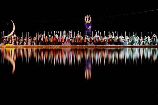 30 सितंबर को दशहरा के दिवस पर हिंदू भगवान राम और लक्षमण के अवतार में आग का प्रदर्शन करते कुछ लोग.