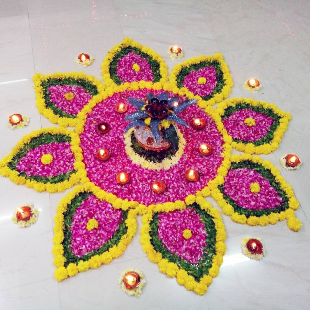 आप रंग-बिरंगे फूलों की मदद से भी रंगोली बना सकते हैं.