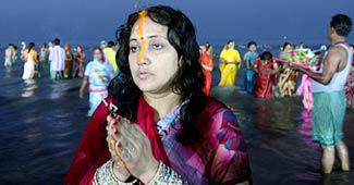 छठ पूजा के मौके पर सूर्य को अर्घ्य देते श्रद्धालु.