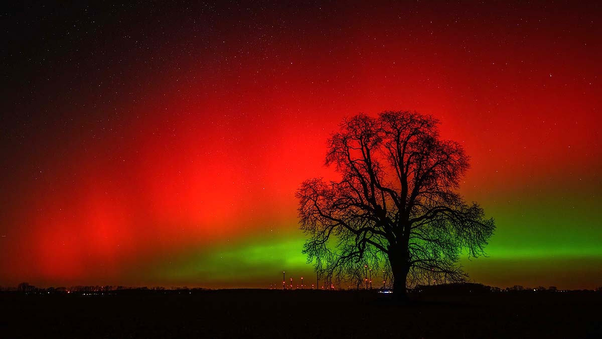 सूरज से निकली सबसे बड़े सौर तूफान (solar radiation storm) ने 20 साल बाद पृथ्वी को प्रभावित किया है. इस तूफान की वजह से नॉर्दर्न लाइट्स अमेरिका, कनाडा और यूरोप के कई हिस्सों में दिखाई दी. यह घटना बहुत दुर्लभ है. रात के आसमान को हरा, लाल और बैंगनी रंगों से चमका रही है. Photo: AP