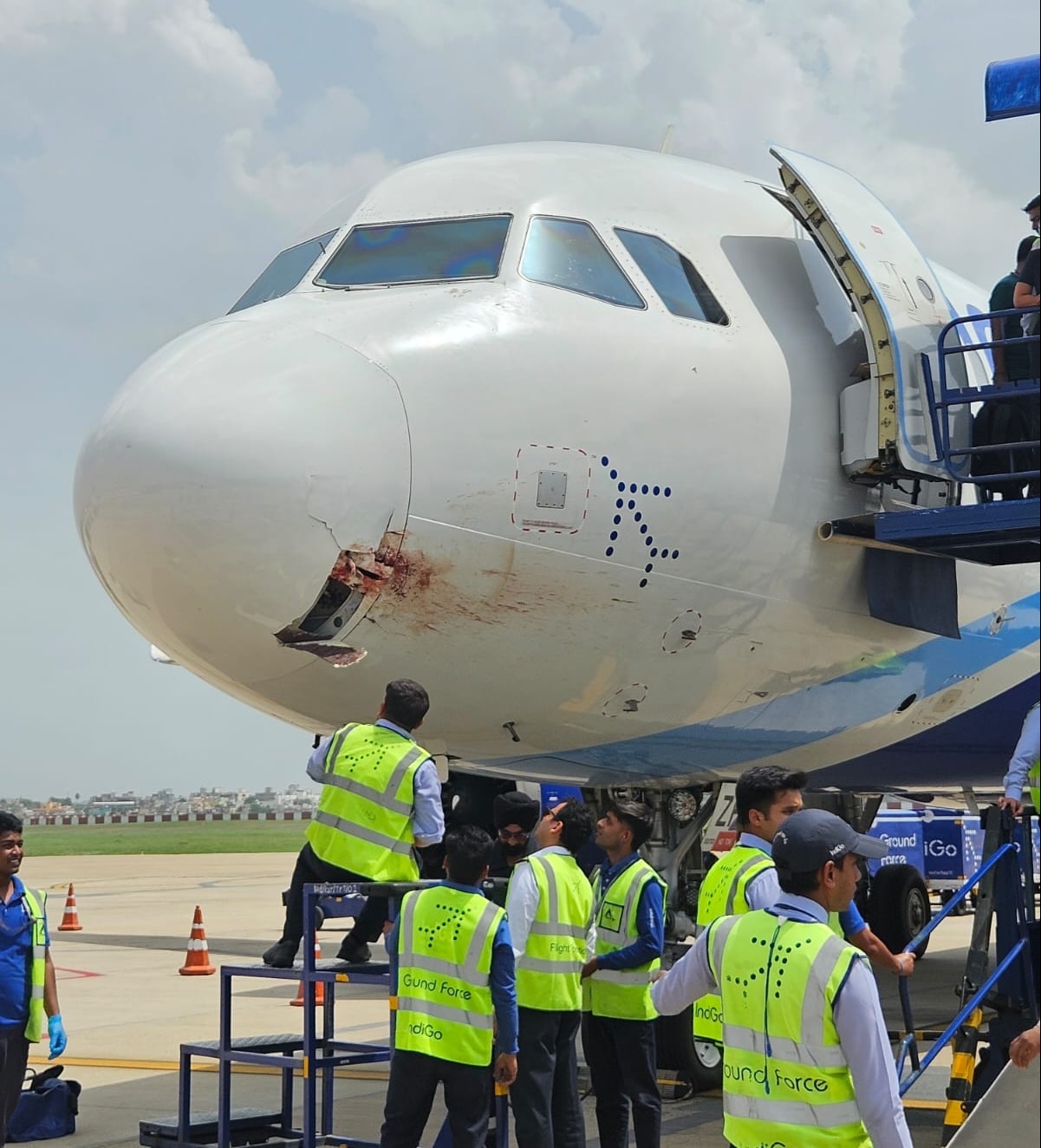 टक्कर के बाद विमान की आपात लैंडिंग करानी पड़ी. सामने आई तस्वीरों दिखता है कि विमान का आगे वाला हिस्सा टूट गया है. अच्छी बात यह रही है कि विमान की आपात लैंडिंग सफल रही और किसी को कोई नुकसान नहीं हुआ.