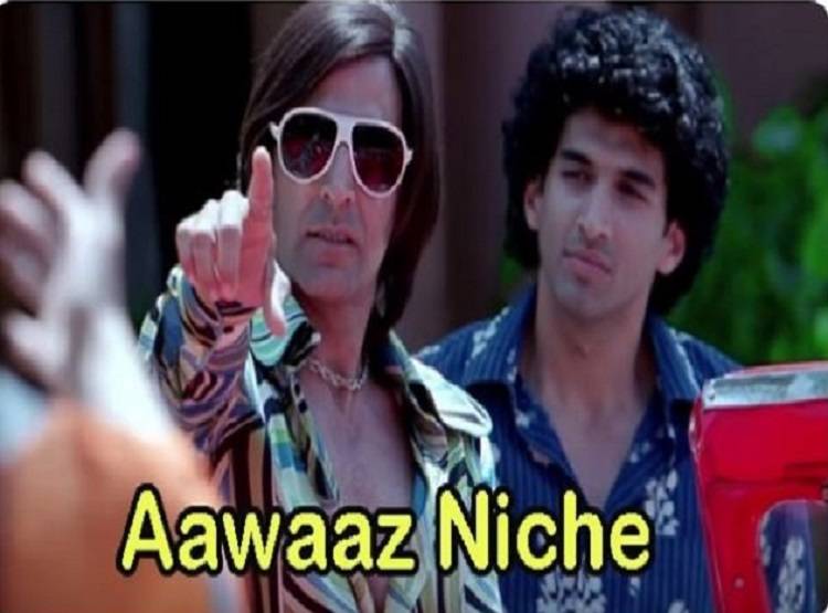 राहुल नाम के ट्विटर यूजर ने बुमराह की शानदार गेंदबाजी को लेकर अभिनेता अक्षय कुमार की फिल्म का एक सीन शेयर किया है जिसमें लिखा हुआ है आवाज नीचे..इस तस्वीर में बुमराह को अक्षय कुमार की तरह दिखाया गया है जो बांग्लादेशी बल्लेबाजों को आवाज नीचे करने की सलाह देते नजर आ रहे हैं.
