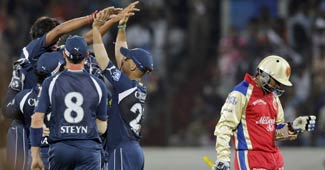बैंगलोर की शुरूआत काफी खराब रही, जिसने दूसरे ओवर में सलामी बल्लेबाज तिलकरत्ने दिलशान का विकेट गंवा दिया जिन्हें इशांत ने पवेलियन भेजा.