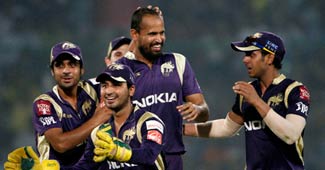 पुणे के खिलाफ खेले गए मैच के दौरान जेसी राइडर को आउट करने के बाद साथी खिलाडि़यों संग राजस्थान के गेंदबाज जोहान बोथा.