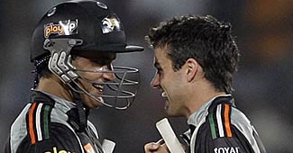 आखिरी ओवर में शिखर धवन ने मुनाफ को डीप मिडविकेट पर छक्का लगाया.