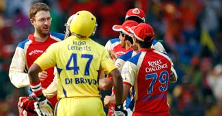 ट्वेंटी-20 लीग में चेन्नई ने बैंगलोर को हराकर फाइनल में जगह बना ली है. बैंगलोर को पहला झटका क्रिस गेल के रूप में लगा. वे 8 रन जोड़कर आर. अश्विन की गेंद पर पगबाधा आउट हो गए.