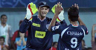 बैंगलोर रॉयल चैलेंजर्स के खिलाफ मुंबई में खेले गए आईपीएल-3 के पहले सेमीफाइनल मैच के दौरान मुंबई इंडियंस के बल्लेबाज शिखर धवन रन आउट हो गए.