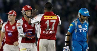 किंग्स इलेवन पंजाब के चावला ने चार ओवर में 18 रन देकर तीन और भट्ट ने 24 रन देकर दो विकेट जबकि दिमित्रि मास्करेन्हास और हरमीत सिंह ने क्रमश: 34 और 27 रन देकर एक-एक विकेट हासिल किया और टीम को जीत दिलायी.
