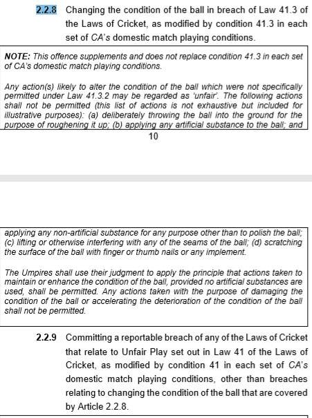 (ऑस्ट्रेलियाई बोर्ड का नियम, गेंद से छेड़छाड़ करने पर)