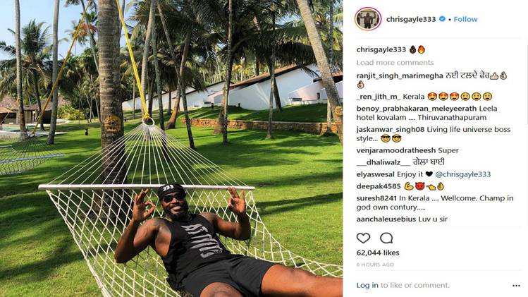 क्रिस गेल ने हाल ही में अपने इंस्टाग्राम अकाउंट पर एक तस्वीर पोस्ट की है, जिसमें वह अपनी पत्नी और बेटी के साथ केरल में छुट्टियां मनाते हुए नजर आ रहे हैं. अपनी इस पोस्ट को कैप्शन देते हुए गेल लिखते हैं, 'यह वास्तव में अच्छा है, जब आपके प्रियजन हमेशा आपके आस-पास हो, '#किंग्स गेल इन केरल.'