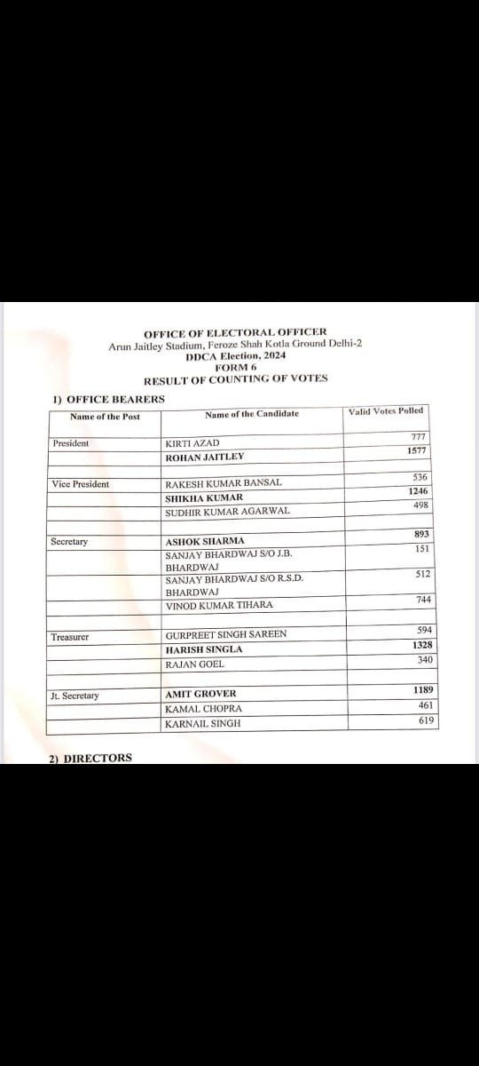 डीडीसीए में अध्यक्ष पद के अलावा अन्य सभी पदों पर रोहन जेटली ग्रुप के सदस्यों ने ही जीत का परचम लहराया. उपाध्यक्ष पद के लिए शिखा कुमार ने राकेश कुमार बंसल और सुधीर कुमार अग्रवाल को पटखनी दी. शिखा कुमार को 1246 वोट मिले जबकि राकेश कुमार को 536 और सुधीर कुमार को 498 वोट पड़े.