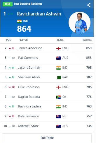 पिछले तीन हफ्ते में अश्विन तीसरे गेंदबाज हैं जो टेस्ट रैंकिंग में शीर्ष पर पहुंचे हैं. पिछली बार एंडरसन ने ऑस्ट्रेलिया के कप्तान पैट कमिंस को पछाड़कर शीर्ष स्थान हासिल किया था. कमिंस नवीनतम रैंकिंग में तीसरे स्थान पर हैं.