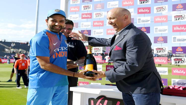 रोहित ने इंग्लैंड के खिलाफ 56 गेंदों पर नाबाद 100 रनों की पारी में 11 चौके और 5 छक्के लगाए. इस पारी के लिए रोहित शर्मा को 'मैन ऑफ द मैच' और सीरीज में 137 रन बनाने के लिए 'मैन ऑफ द सीरीज' भी चुना गया. इस पारी की बदौलत रोहित टी-20 में 3 शतक लगाने वाले पहले भारतीय बन गए हैं. विश्व क्रिकेट में न्यूजीलैंड के कॉलिन मुनरो के नाम ही 3 टी-20 शतक हैं, इस लिहाज से रोहित ये कमाल करने वाले दुनिया के दूसरे बल्लेबाज हैं.
