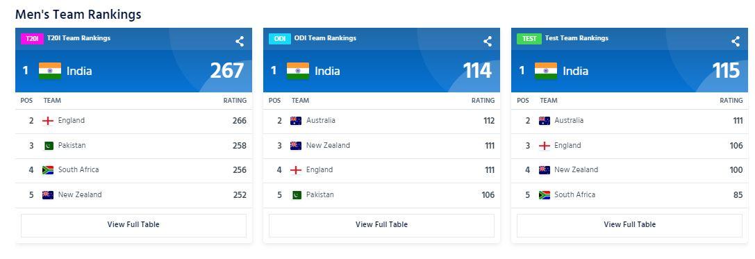 • टेस्ट रैंकिंग- भारत नंबर-1, 115 रेटिंग्स