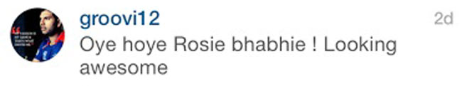 इस तस्वीर पर कमेंट्स की बरसात शुरू हुई और इसी बीच युवी (@groovi12) का कमेंट भी आ गया. युवी ने लिखा- 'Oye hoye Rosie Bhabhie ! Looking awesome' फिर क्या था लोग 'Many moods of Rosie' से ज्यादा युवी के 'भाभी कमेंट' पर कमेंट करने लगे.