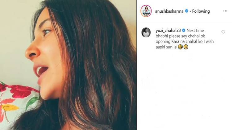 युजवेंद्र चहल ने इंस्टाग्राम पर अनुष्का शर्मा और विराट कोहली के इस वीडियो पर कमेंट करते हुए लिखा, 'भाभी अगली बार कृपया कहना- चहल से ओपनिंग कराओ ना, मैं यही उम्मीद करूंगा कि वह (विराट कोहली) आपकी यह बात मान लें.'