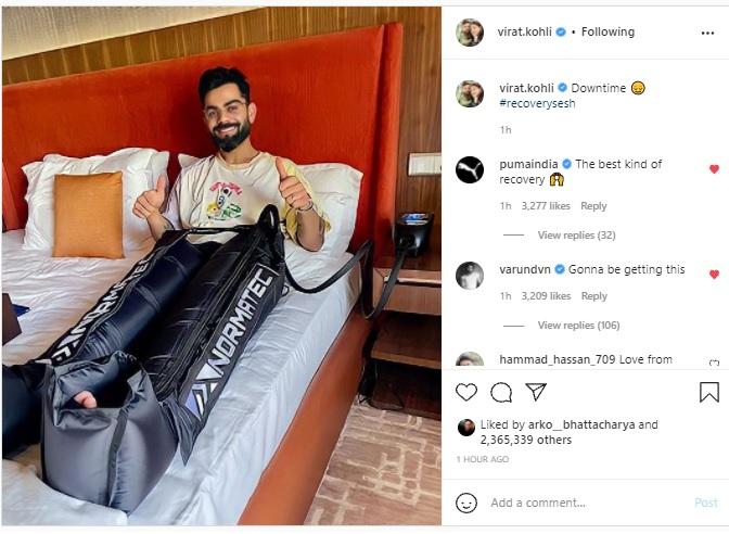 विराट कोहली ने होटल में आराम करते हुए तस्वीर साझा की और कैप्शन दिया Downtime. कोहली ने इसके साथ रिकवरी से जुड़ा हैशटेग भी शेयर किया. एलिमिनेटर जैसे बड़े मैच से पहले विराट कोहली की पैरों की मसाज़ करते हुए तस्वीर तेज़ी से वायरल हो गई.