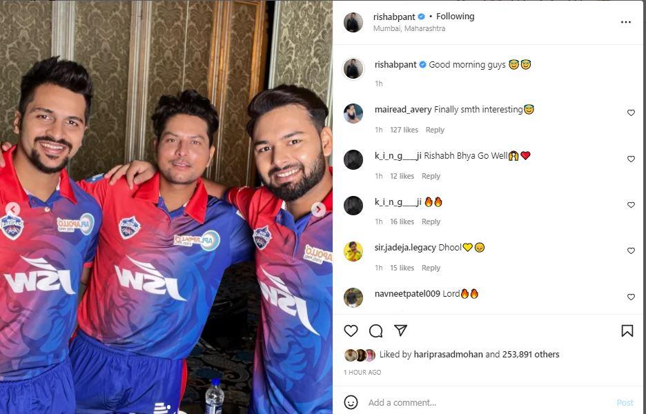 ऋषभ पंत ने शार्दुल और कुलदीप के साथ तस्वीर साझा करते हुए लिखा, ‘गुड मॉर्निंग दोस्तों’. ये तस्वीर तेज़ी से इंस्टाग्राम पर वायरल भी हो गई.