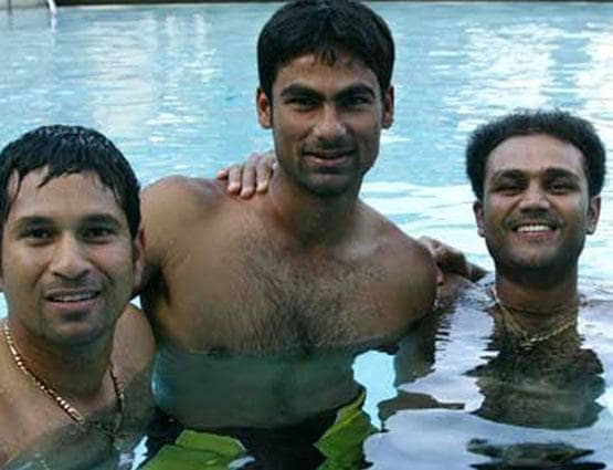 स्वीमिंग पूल का मजा लेते कैफ, वीरू और सचिन.