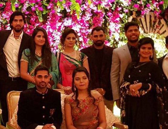 उमेश यादव और ईशांत शर्मा अपनी पत्नियों के साथ रिसेप्शन में शामिल होने के